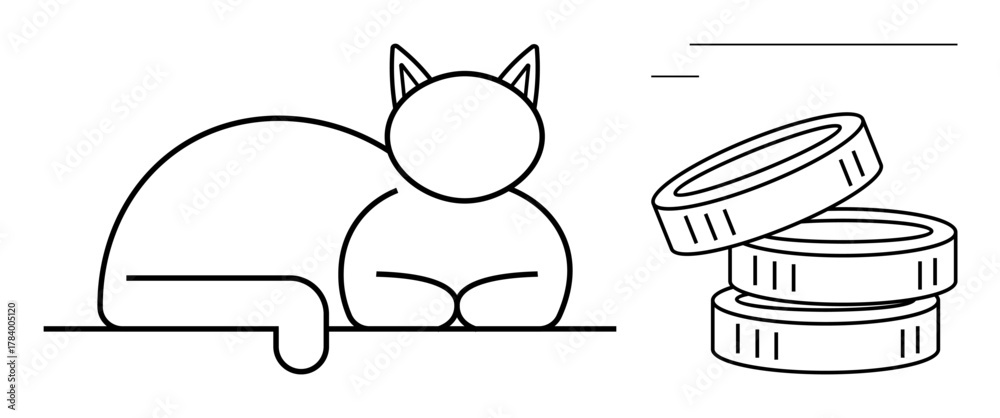 Photos Cat resting with contentment near a stack of coins, representing financial stability, investment, wealth, savings, insurance, budgeting, and animal welfare