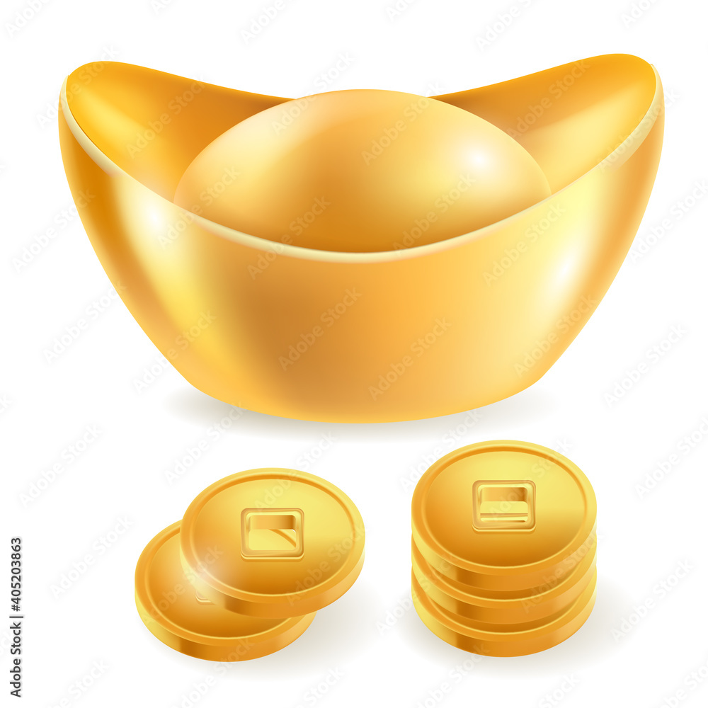 Photos Chinese gold ingot isolated elements. Vector illustrations.