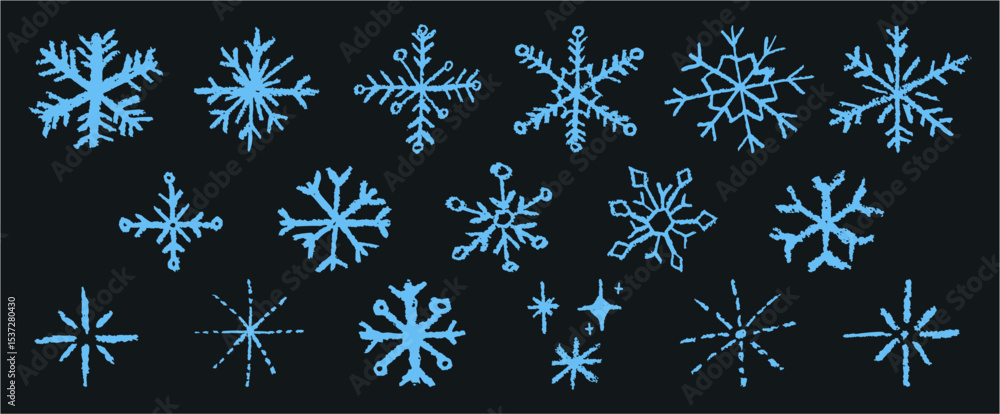 Tableau sur toile Christmas snowflake set with wax blue crayon or charcoal texture