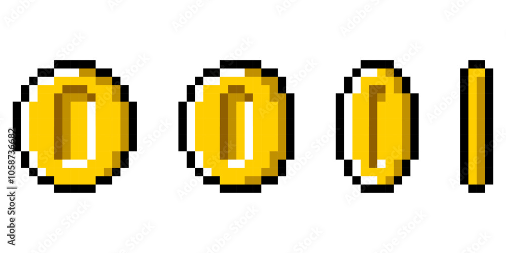 Photos Classic retro 8-bit pixel art coins in different perspectives