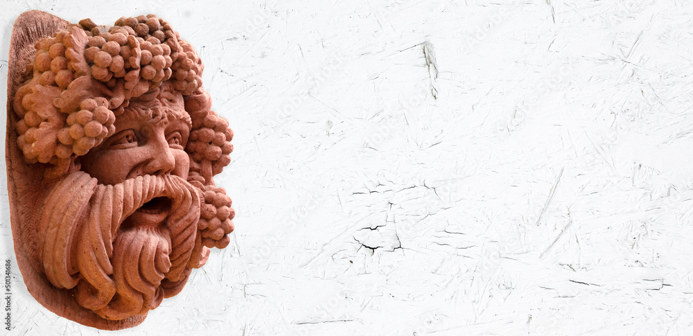 Photos Close up of a Bacchus figure on white background with place for text