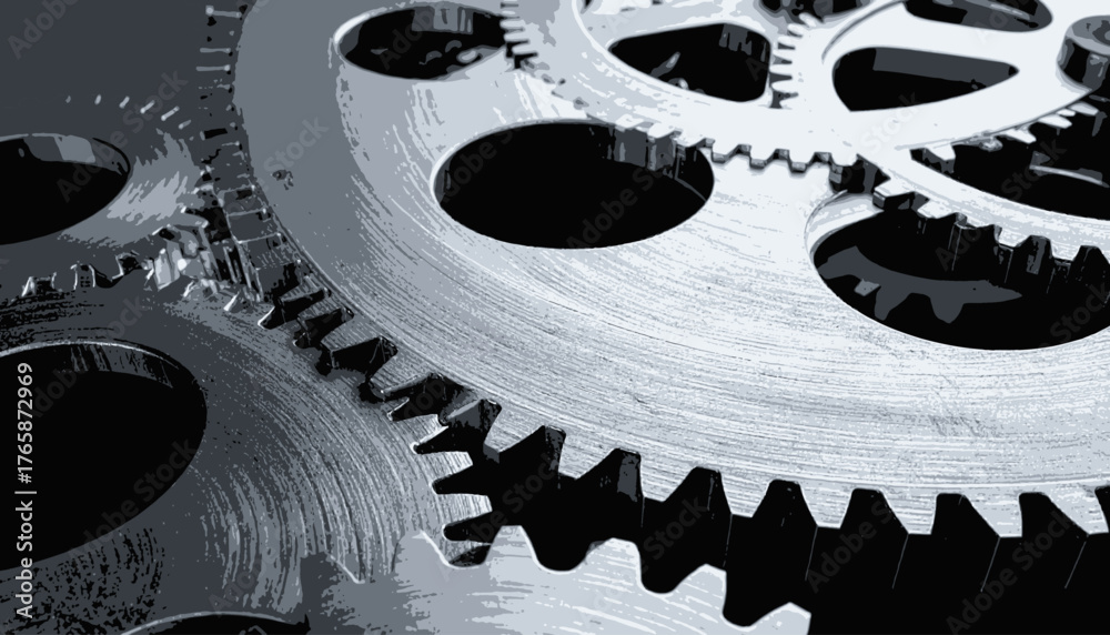 Tableau sur toile Close-up of metallic gears interlocking against a dark background, depicting mec