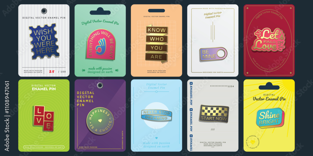Tableau sur toile Collection of Digital Vector Enamel Pin Card Template