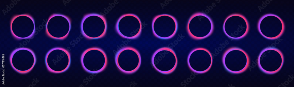 Photos Collection of round glowing neon lighting on dark background with copy space