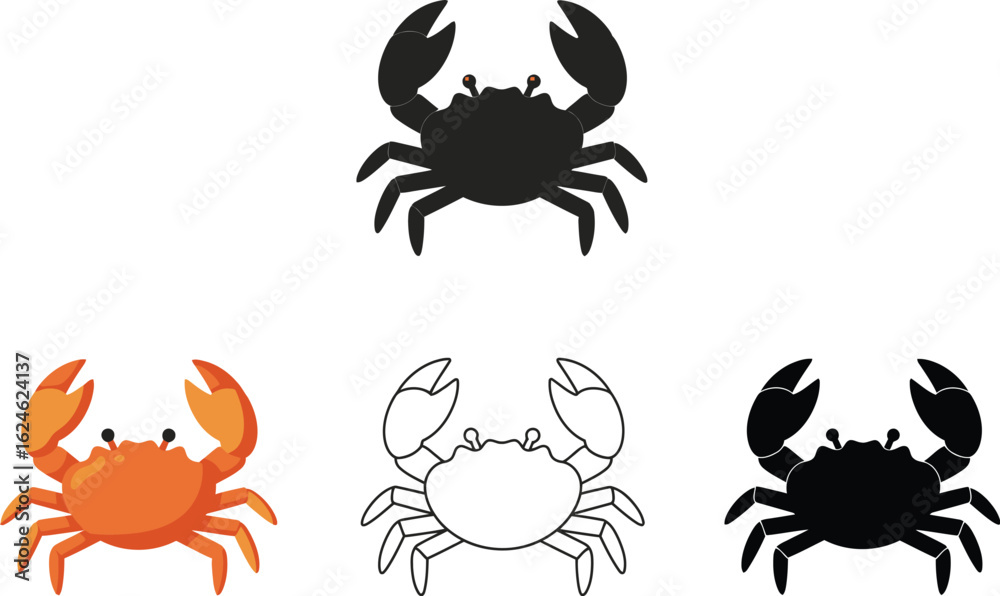 Photos Collection of stylized crab illustrations showcasing a silhouette a colorful car