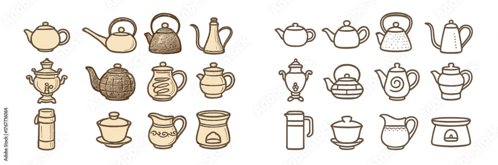 Photos Collection of various teapots and kettles designed in a simple, minimalist style