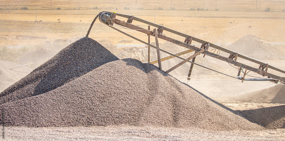 Photos Crushing stones in a quarry for processing minerals, cement, limestone