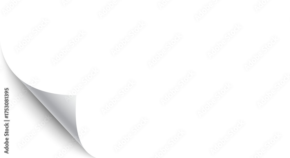 Tableau sur toile Curled Page Corner Effect with Gray Underside on Transparent Background