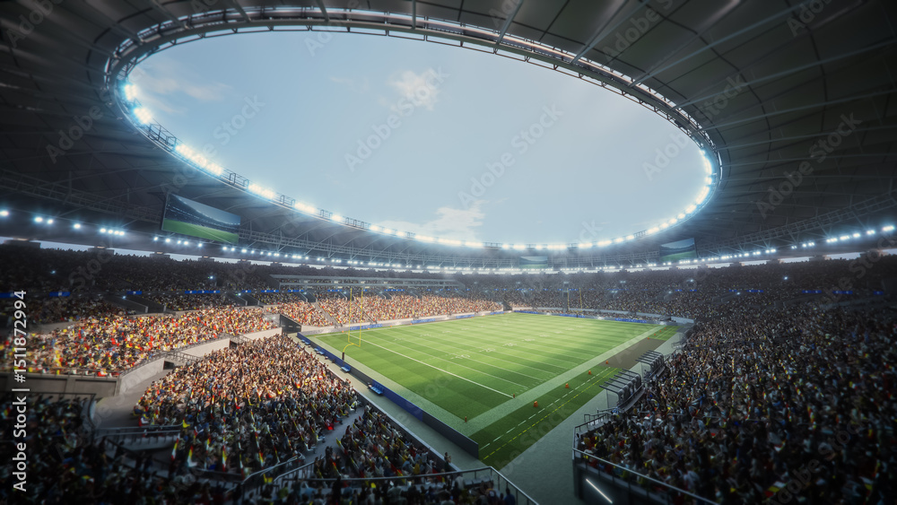 Tableau sur toile Day View of a Crowded American Football Stadium With Fans Cheering