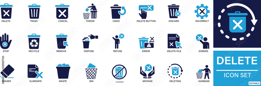 Photos Delete icon set, trash, delete button, cancel, undo You can easily change the co