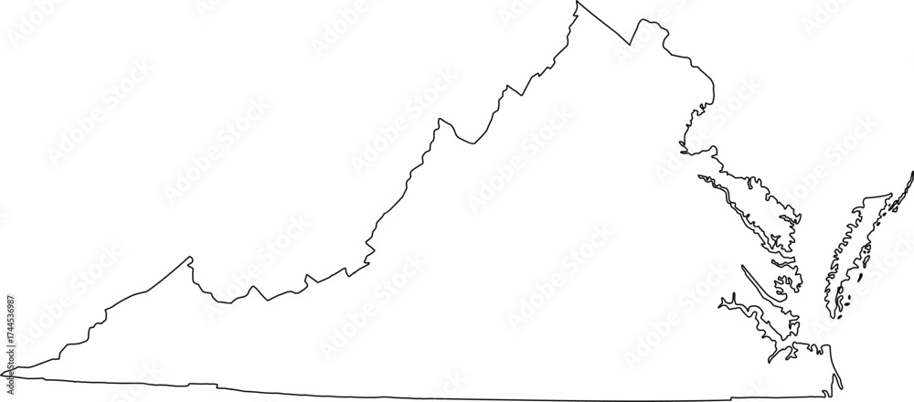 Tableau sur toile detailed vector outline map of the Commonwealth of Virginia, an East Coast U