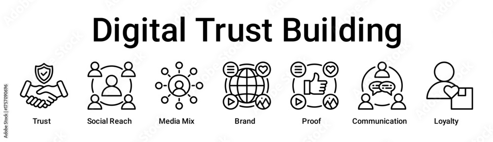 Tableau sur toile Digital Trust Building banner web icon vector illustration concept for business with icon of Trust, Social Reach, Media Mix, Brand, Proof, Communication