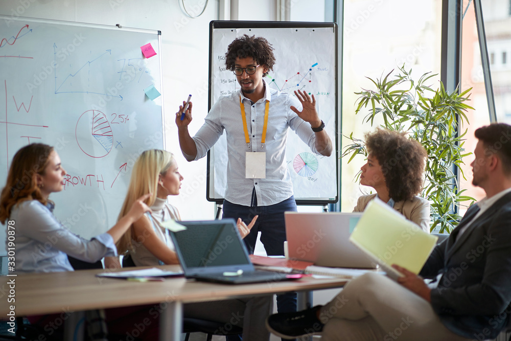 Tableau sur toile Diverse colleagues collaborative brainstorming at office briefing