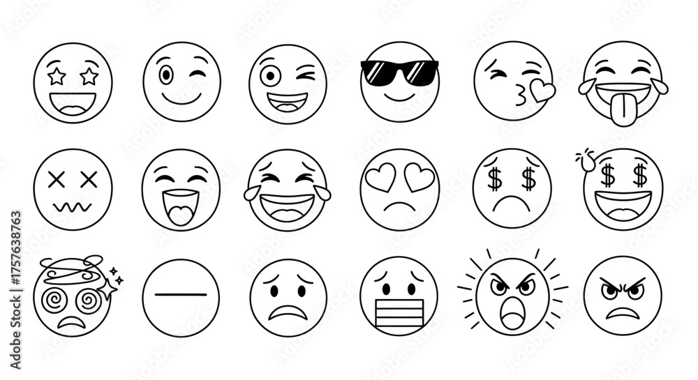 Tableau sur toile Diverse Set of Outline Emoji Faces, Expressing a Full Spectrum of Emotions from
