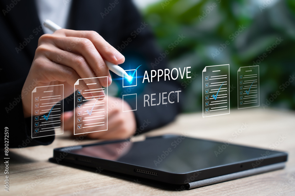 Tableau sur toile Document approval, checklist, certification, quality control concept, Businesswo