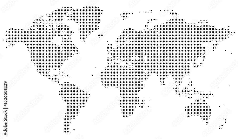 Tableau sur toile Dotted vector world map made with tiny circles to build a pixelated globe