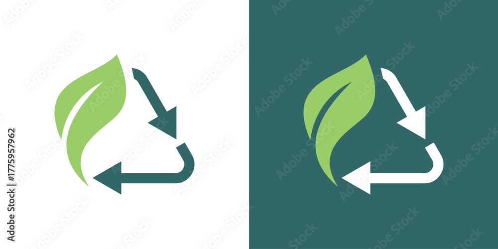 Tableau sur toile Eco Recycle Leaf Arrow Logo , A smart dual-meaning design blending a recycling a