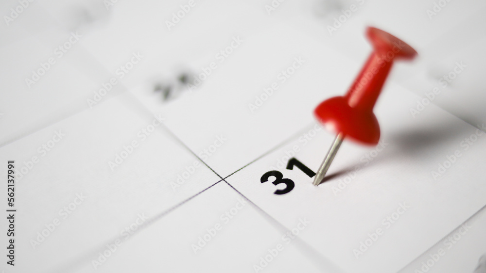 Tableau sur toile Embroidered red pins on a calendar on the 31 st with selective focus