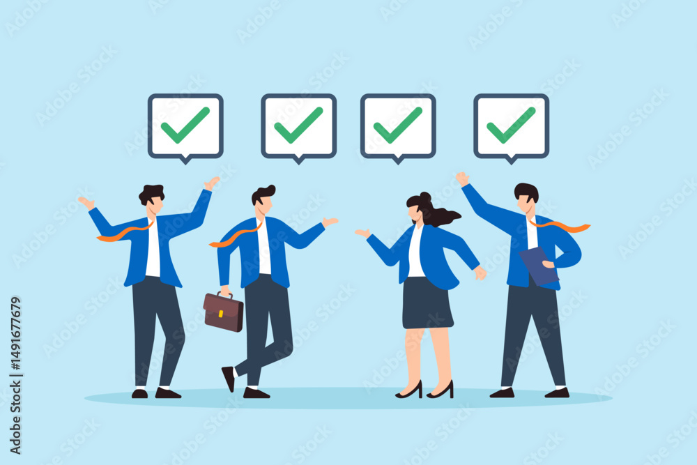 Tableau sur toile Flat illustration of business people agreeing on completed tasks with check mark