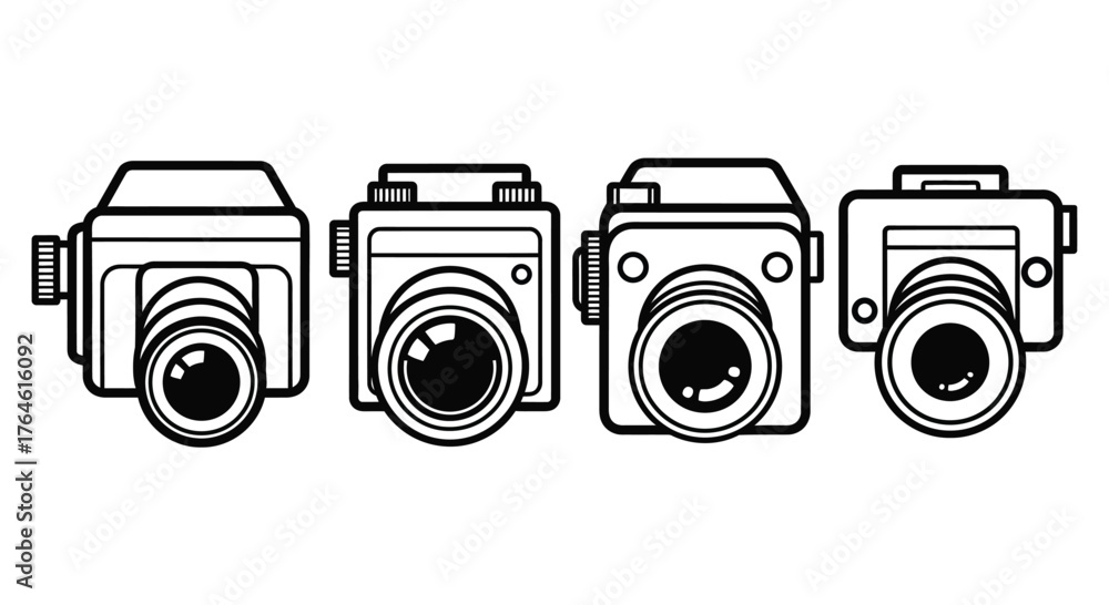 Photos Four line art cameras showing different angles and designs for photography enthu