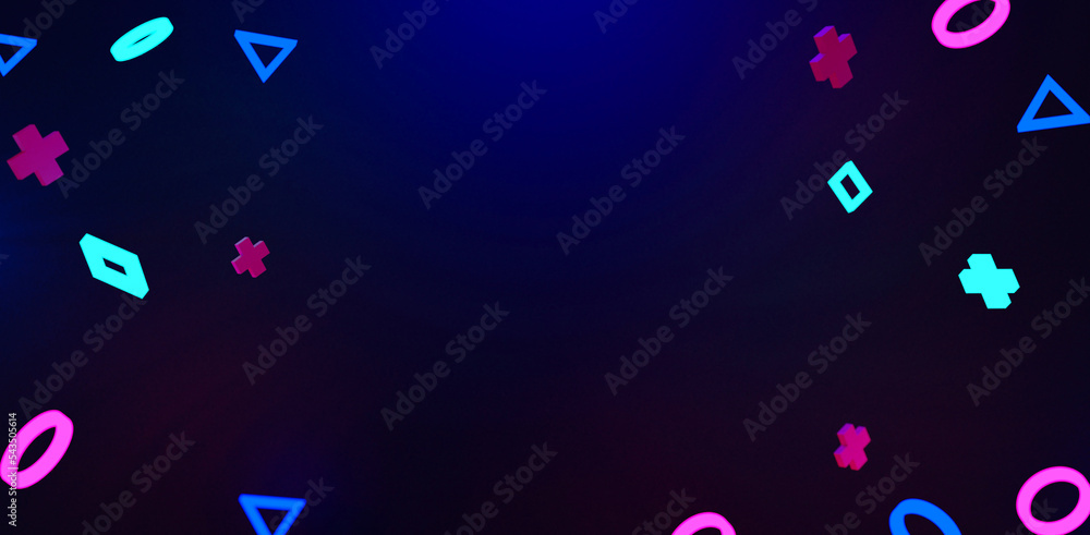 Photos gaming joystick controller console geometry button icon floating neon glow on ba