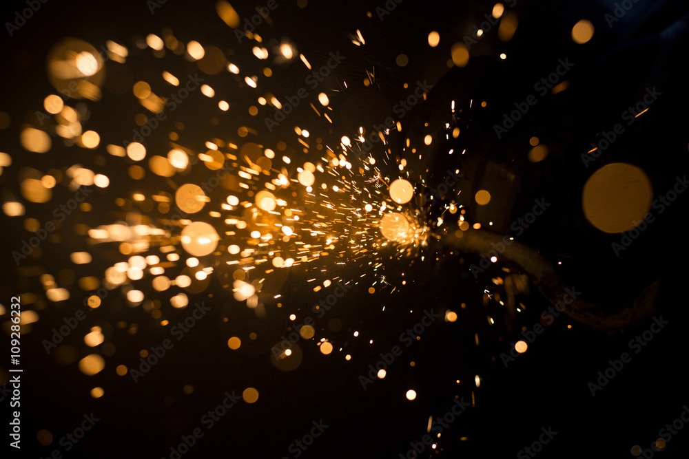Photos Glowing flow of steel metal spark dust particles and bokeh shine in the dark bac