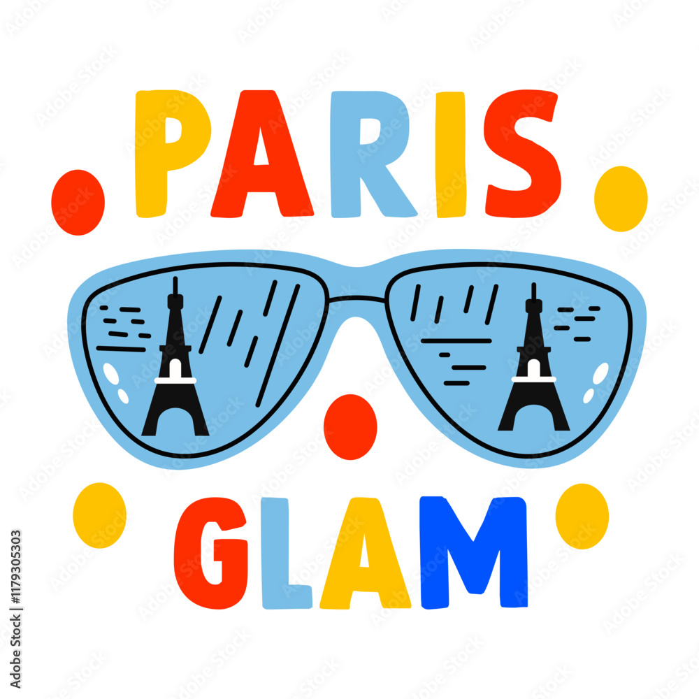 Photos Goggles with eiffel tower view and paris glam text, flat sticker