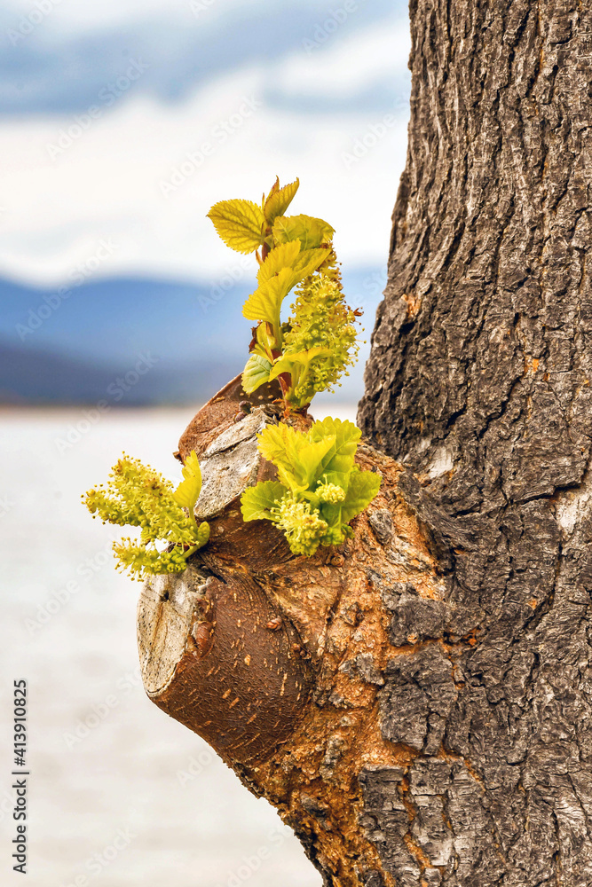 Photos Green shoots from regrowth on the stump of a pruned tree
