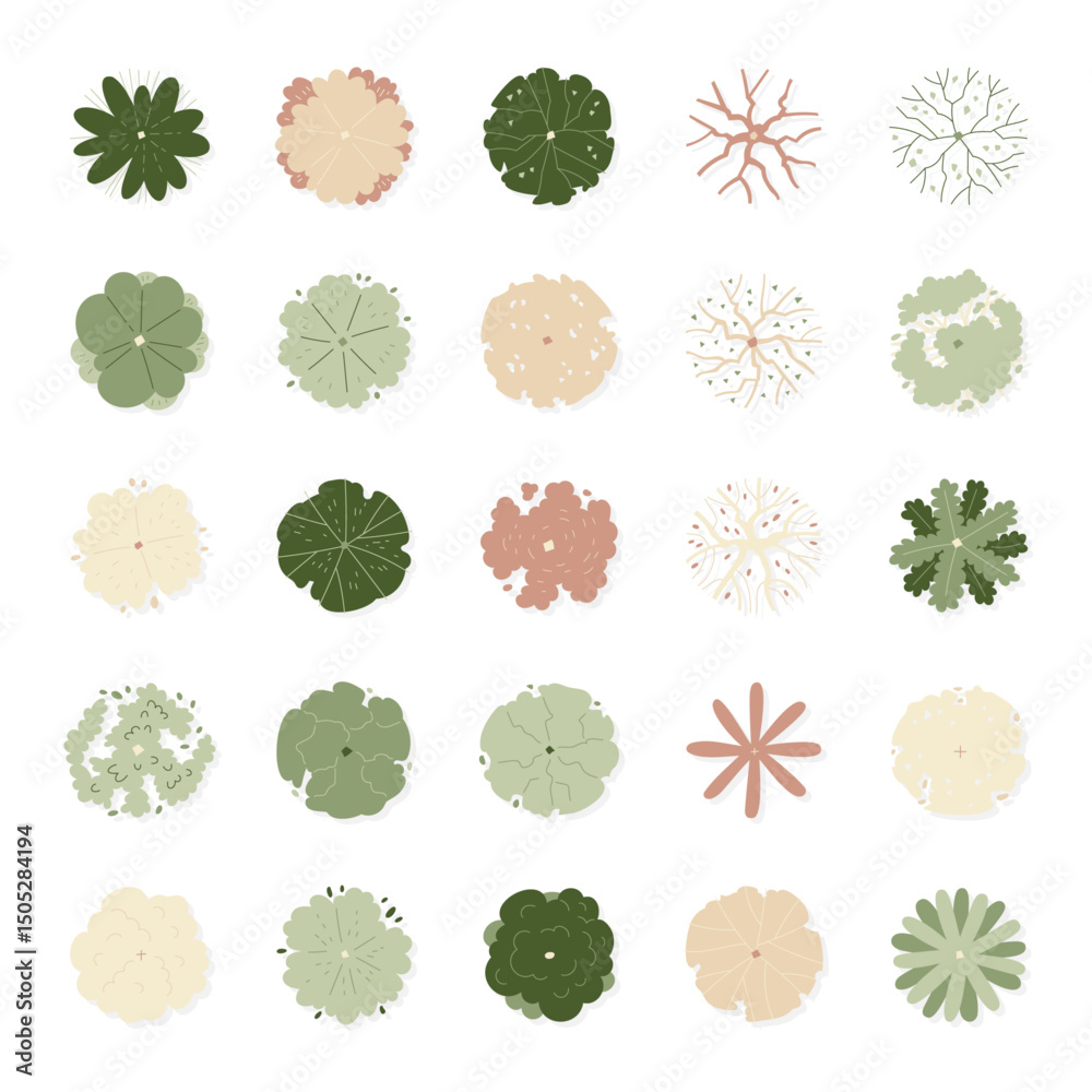 Tableau sur toile hand drawn cartoon illustration of top view tree.