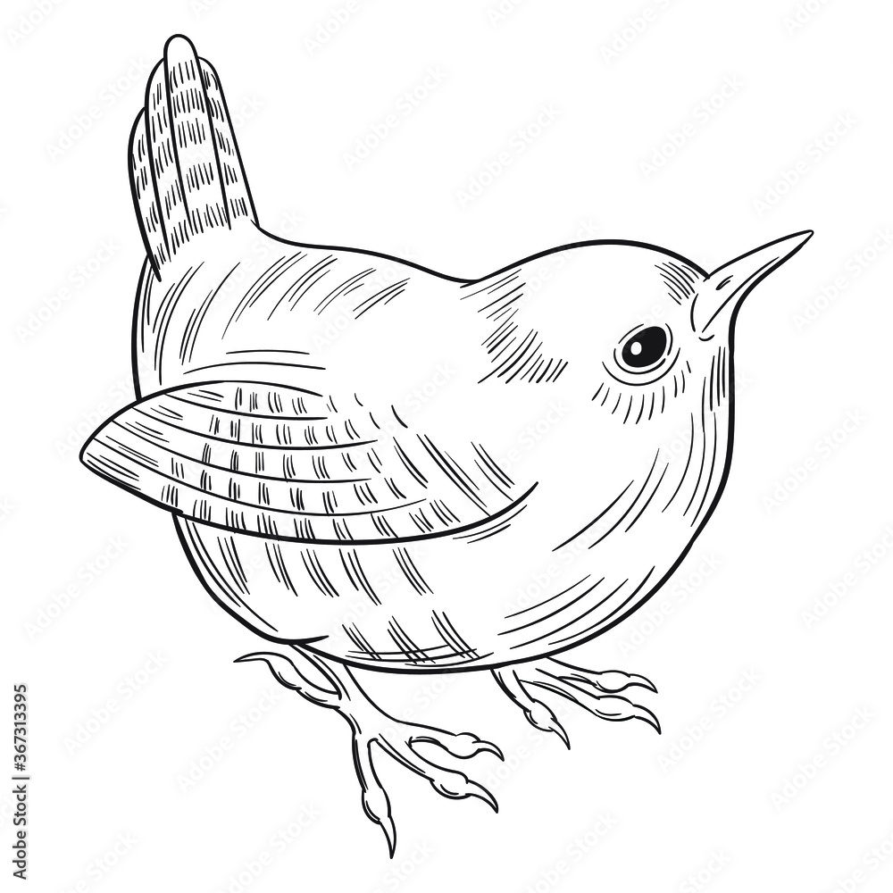 Photos Hand drawn vector of wren isolated on white background for coloring page