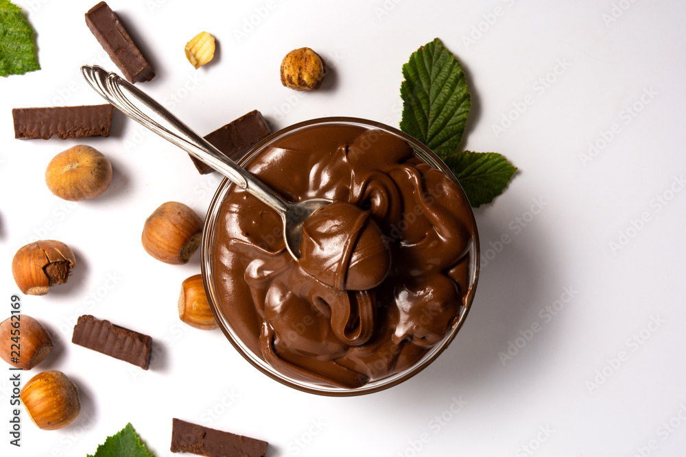 Photos Hazelnut spread with mint leaves in a jar