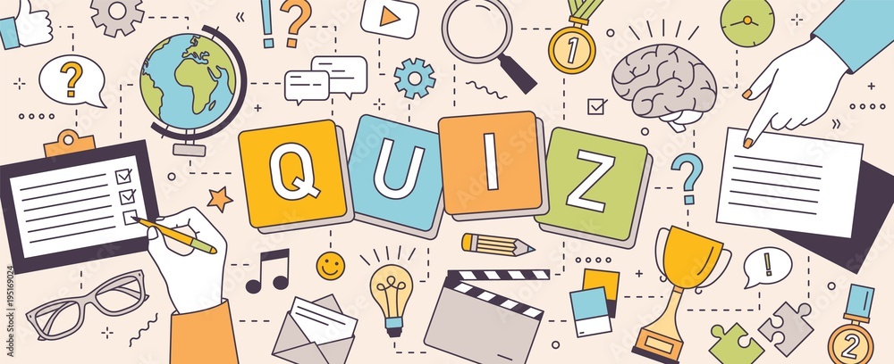 Tableau sur toile Horizontal banner with hands of people solving puzzles or brain teasers and answering quiz questions