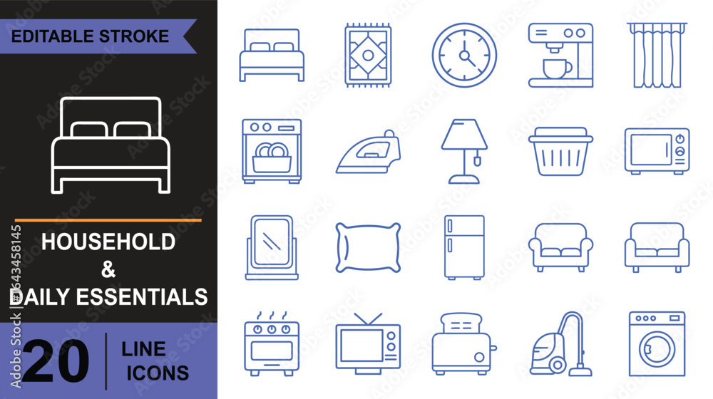Photos Household and Daily Essentials Editable Line Icons Set Collection of 20 editable
