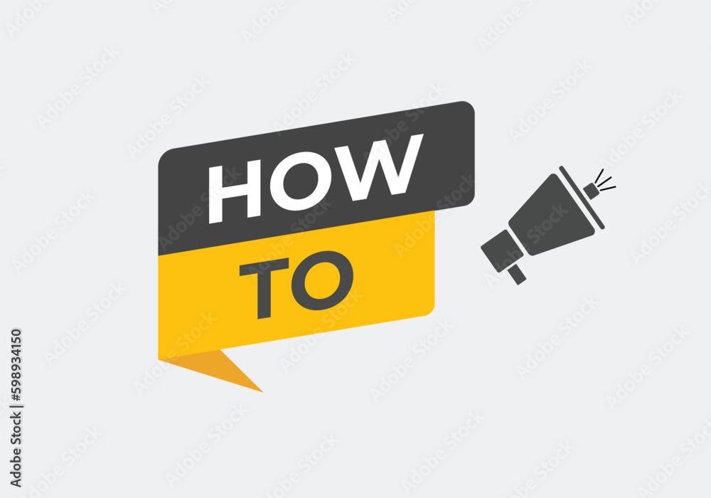 Tableau sur toile How To Button. Speech Bubble, Banner Label How To
