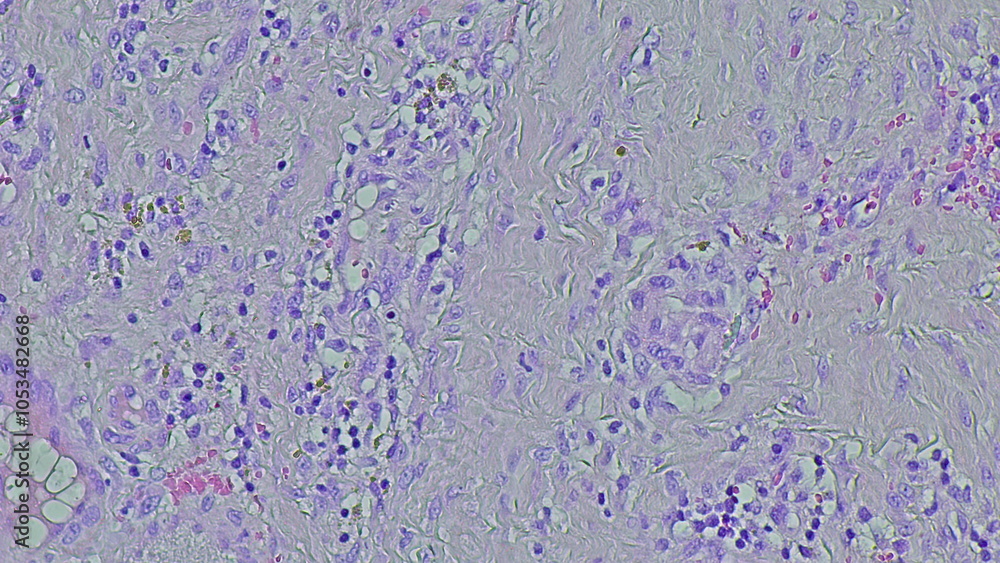 Photos image under the microscope of non-specific chronic inflammation in septic arthri