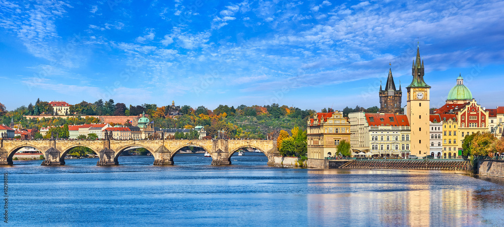 Photos Fall landscape view to Charles bridge on Vltava river in Prague