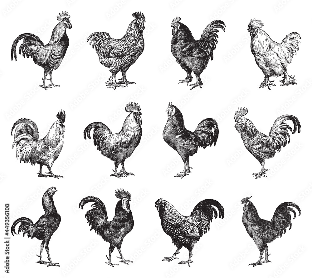 Photos Chicken rooster collection - vintage engraved vector illustration from Larousse