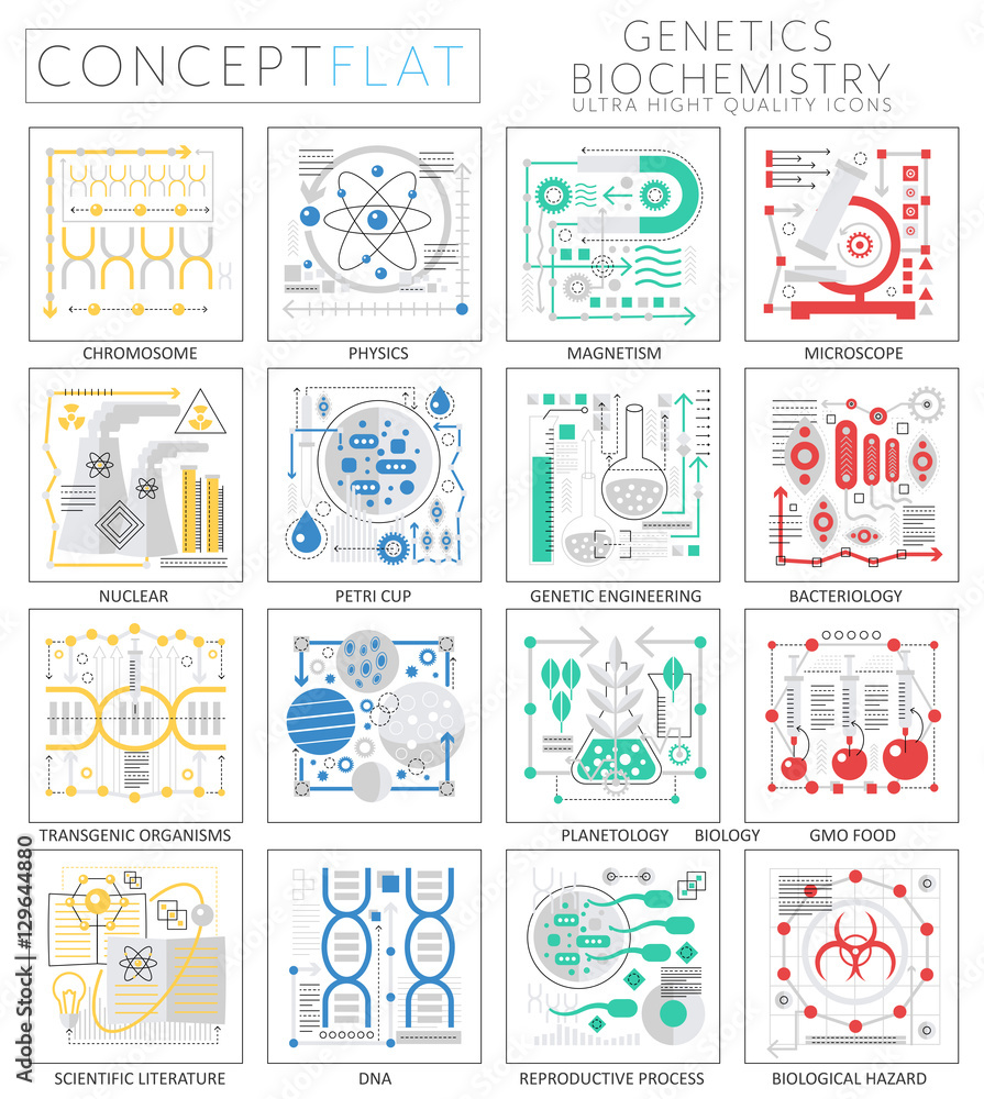 Tableau sur toile Infographics mini concept Genetics and biochemistry icons for web