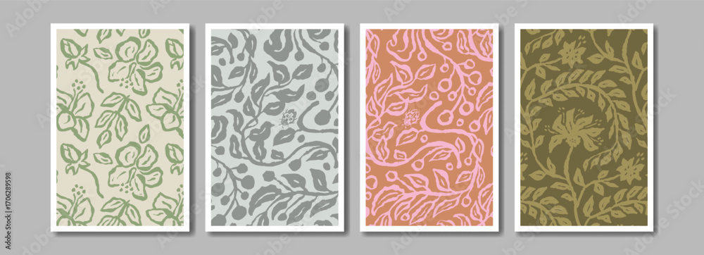 Photos Ink brush abstract floral pattern for poster or card design set