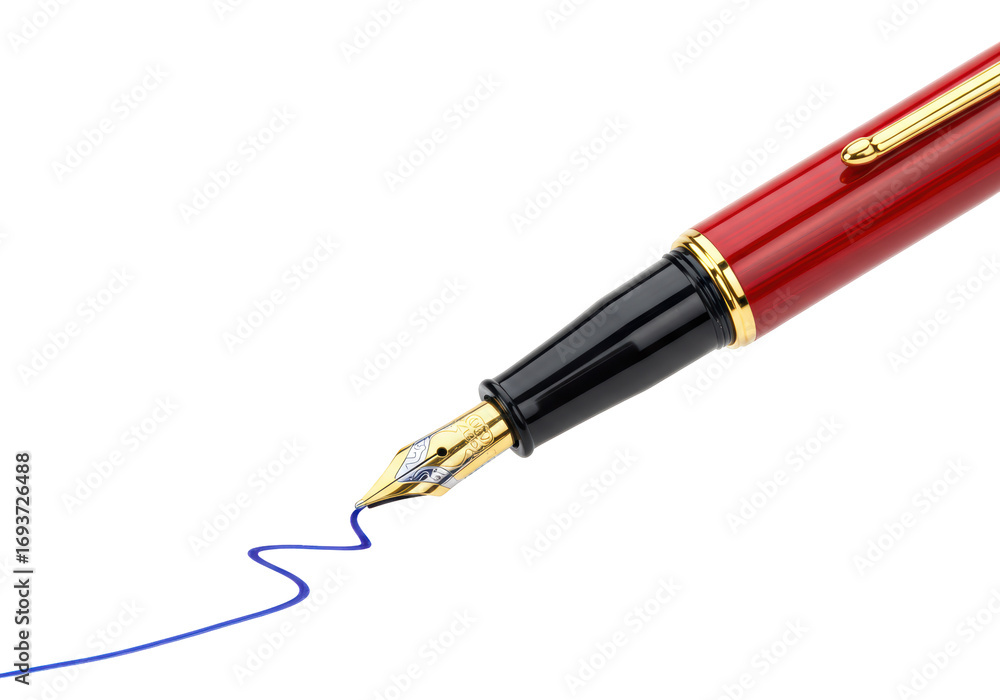 Photos Isolated red fountain pen with a gold nib and blue ink, close-up office tool for