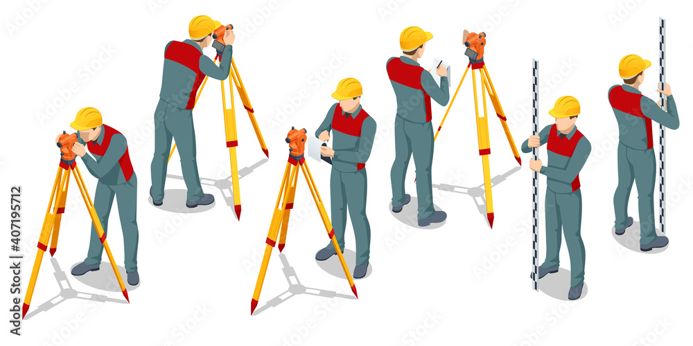 Tableau sur toile Isometric surveying measuring equipment level theodolite on tripod isolated on white background