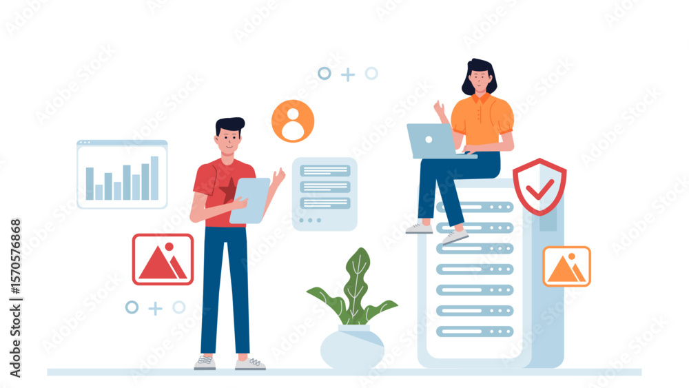 Photos IT team auditing cloud infrastructure flat vector illustration