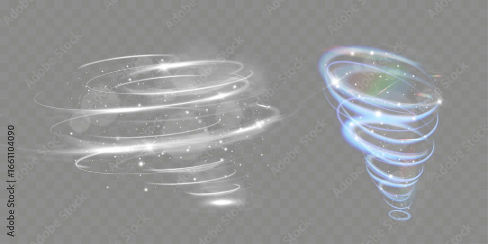 Tableau sur toile Magic glowing spiral tornado vortex with light swirl and sparkles on transparent background