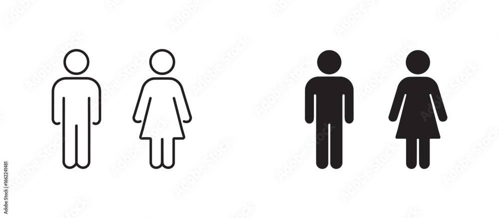 Tableau sur toile Man and woman outline and silhouette icon set .