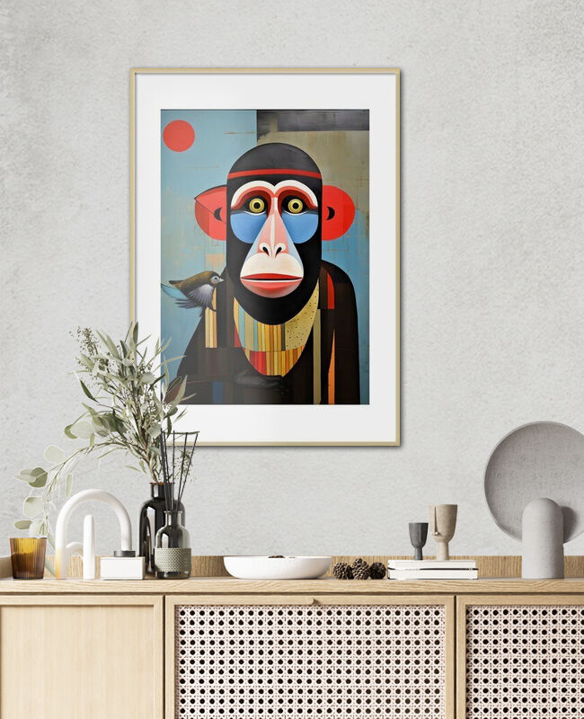 Tableau sur toile Abstract Monkey With Abstract Sparrow