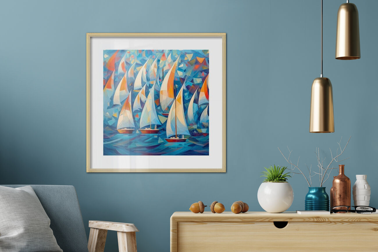 Tableau sur toile Abstract sailboats in the sea, white triangular sails
