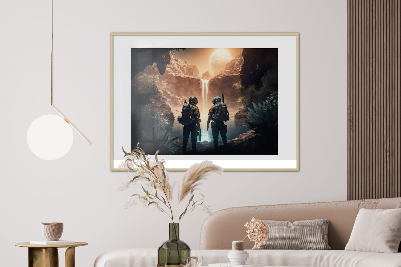 Poster Astronauts exploring new Exo Planet in another Universe
