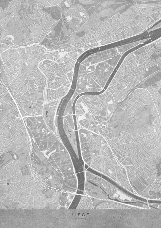 Tableau sur toile Map of Liège (Belgium) in gray vintage style