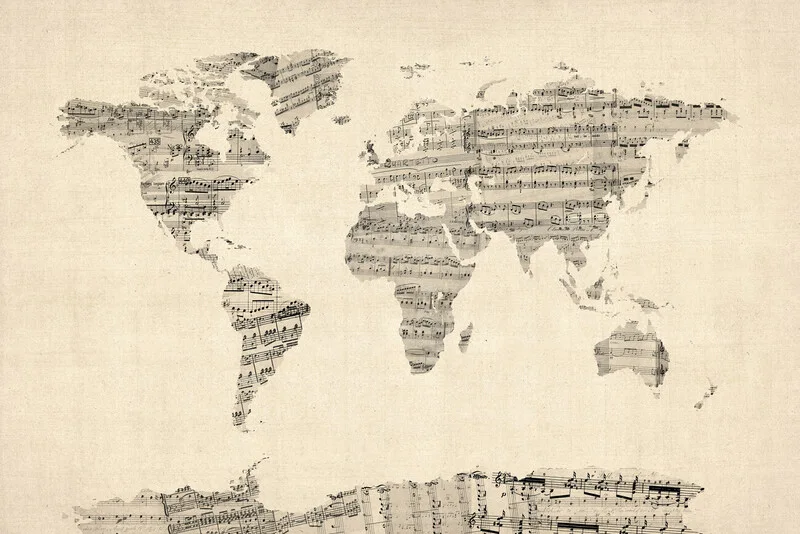 Tableau sur toile Map of the World Map from Old Sheet Music