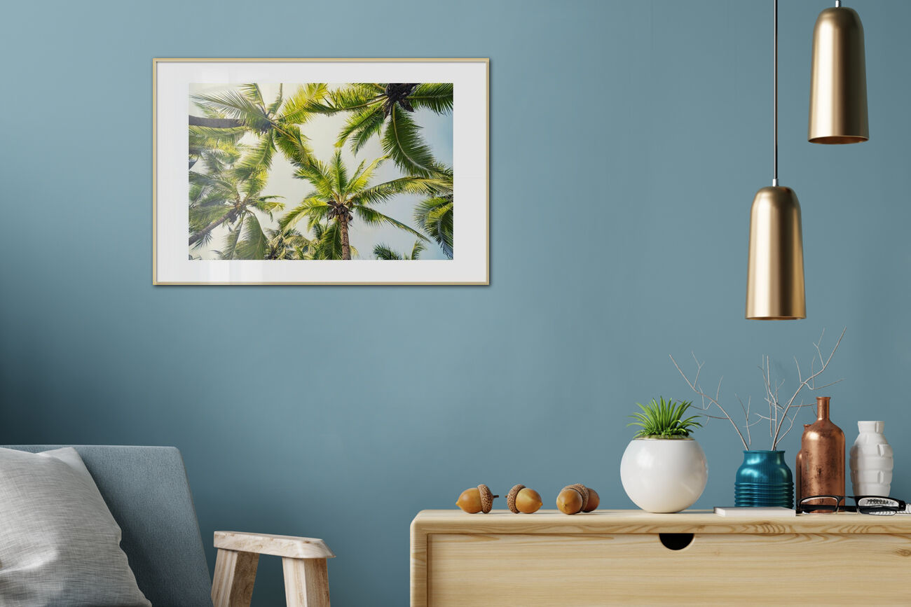 Cadre de haute qualité fabriqué en Europe, avec du plexiglas et des panneaux MDF. Au dos, il contient des poignées en acier des deux côtés pour faciliter l'accrochage. Ne contient pas de passe-partout.